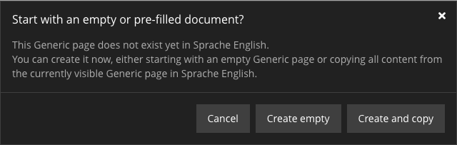 - If the page does not exist yet, a popup appears where you can create this node variant.