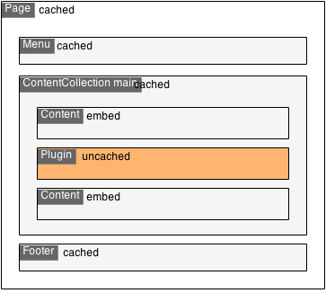 Each Fusion path (of type object) can have its own cache configuration. These cache configurations can be nested to re-use parts of the content and have multiple cache entries with different properties on the same page. This could be a menu or section that is the same for many pages. The nesting support is also allows to have uncached content like plugins inside cached content.